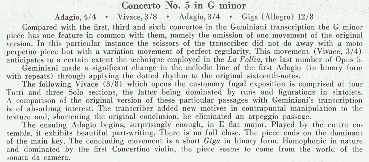 Pour une courte présentation de l'opus 5 d'Arcangelo Corelli et de la transcription de Francesco Geminiani, ainsi que quelques remarques sur les documents utilisés par Dean Eckertsen, voir ma page sur le premier concerto grosso.