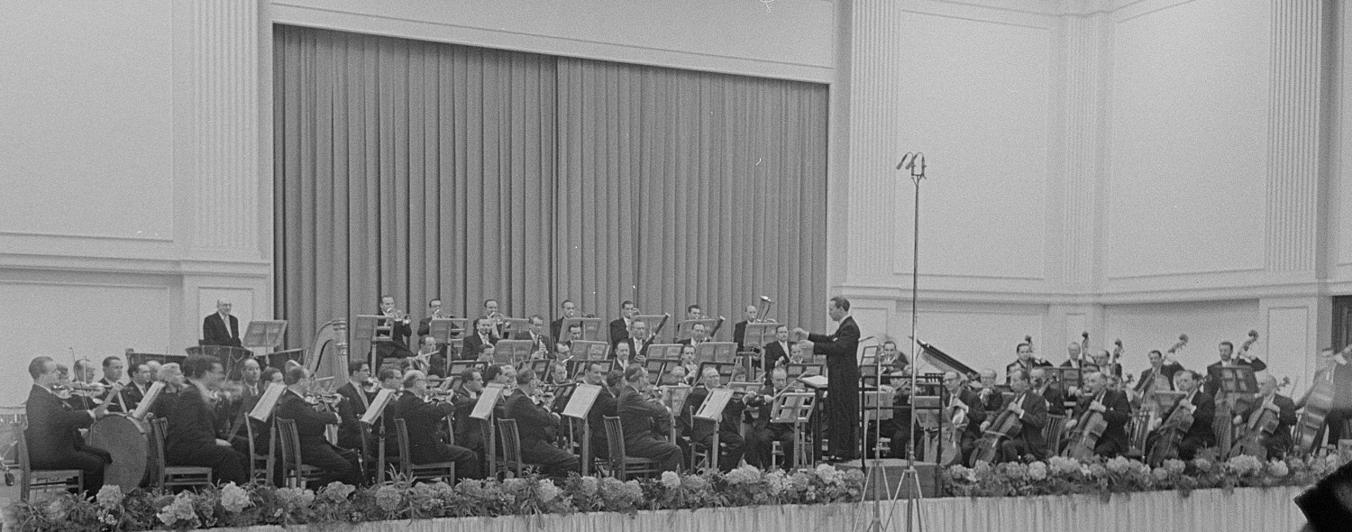 Adolf Fritz Guhl dirigeant le Grand Orchestre de la Radio de Berlin, février 1956, Photographe: Abraham Pisarek, Aufn.-Nr.: df_pk_0002314_004, Eigentümer: SLUB / Deutsche Fotothek (Konzert des Großen Rundfunk-Orchesters anlässlich des 10-jähriges Bestehen Deutschlandsenders im Haus des Rundfunks)
